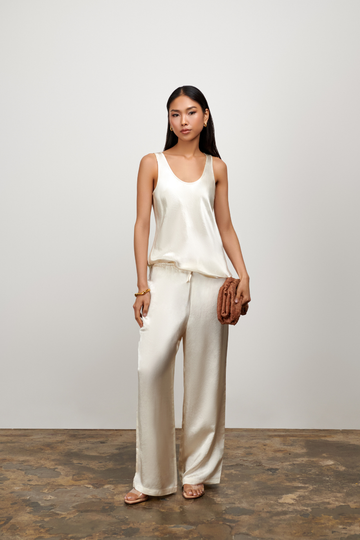 Alaia is the ultimate dressy top. With it's satin finish and low back scoop this top is perfect for when you need instant elevation. Make it a set with the matching Esme Satin Pants or pair back with the Emma Pant for easy, effortless style.
